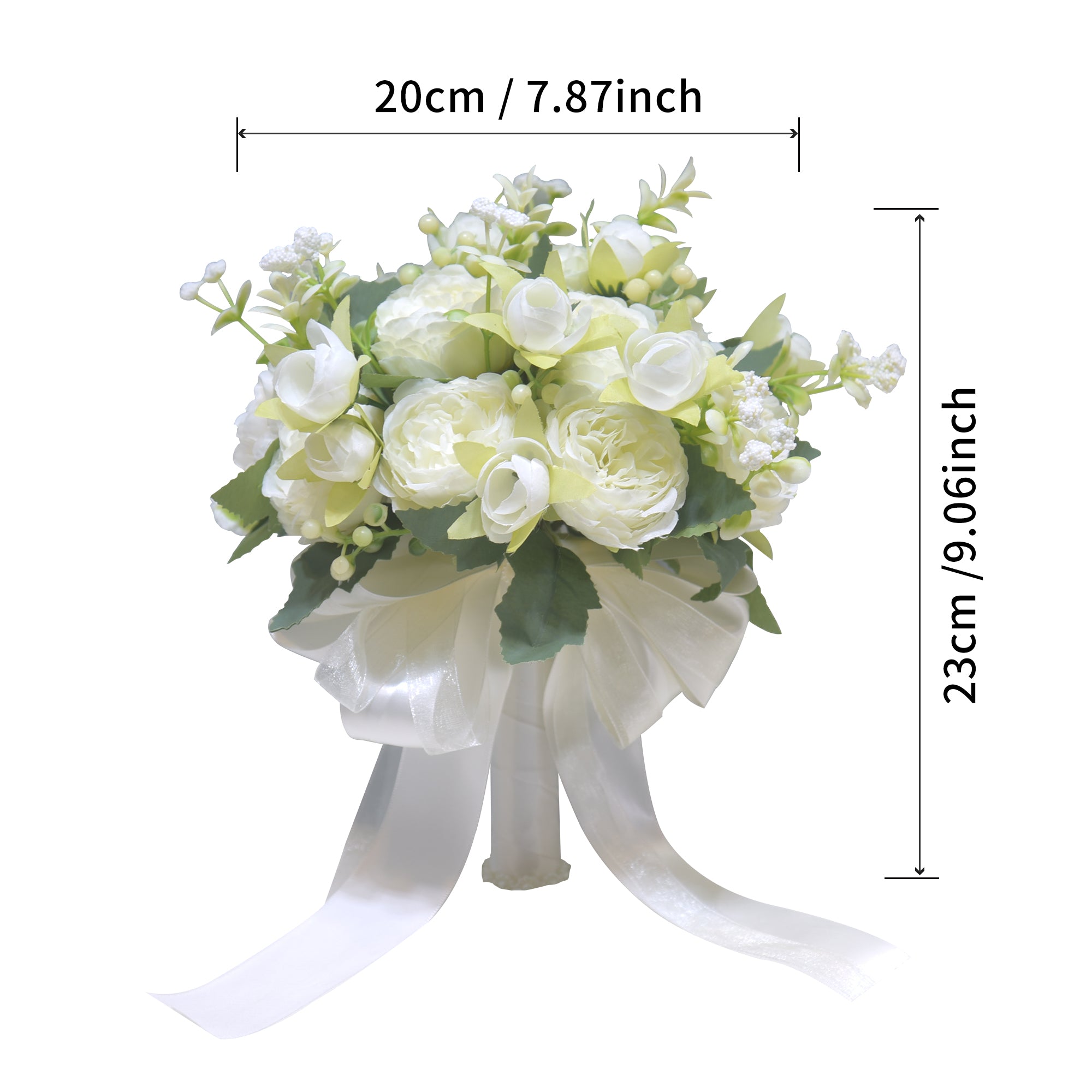 Size: The bouquet is 20 centimeters wide and 23 centimeters high.